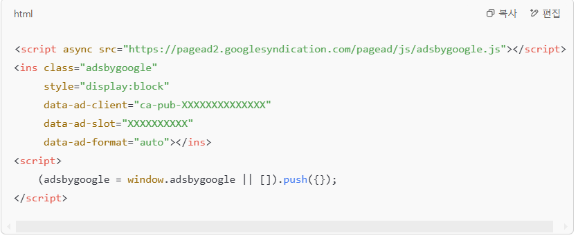📌 AdSense 광고 코드 직접 삽입 방법
